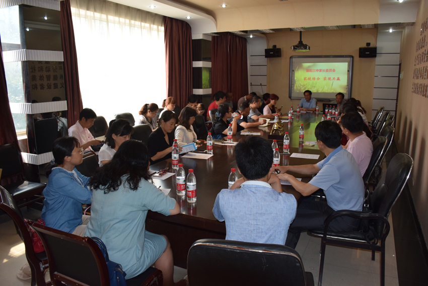 在學(xué)校會(huì)議室,家長(zhǎng)委員會(huì)代表齊聚一堂,由政教處主任張東主持開展了家長(zhǎng)學(xué)校的培訓(xùn)交流活動(dòng)。分管德育的副校長(zhǎng)曹威作了重要講話,熱烈歡迎家委會(huì)代表與會(huì),強(qiáng)調(diào)了加強(qiáng)學(xué)校與家庭溝通與配合,需要充分發(fā)揮家長(zhǎng)委員會(huì)的作用,歡迎家委會(huì)代表們對(duì)學(xué)校管理、教育教學(xué)、校風(fēng)學(xué)風(fēng)等方面建言獻(xiàn)策。張主任向家委會(huì)代表介紹了家長(zhǎng)學(xué)校的有關(guān)工作安排,并結(jié)合實(shí)際作了《理性陪伴,一起成長(zhǎng)》的高中生家庭教育講座,生動(dòng)幽默地交流了在家庭教育中的一些好的做法和經(jīng)驗(yàn),贏得了家委會(huì)代表的一陣陣掌聲。通過交流培訓(xùn),家長(zhǎng)們?cè)谌绾卫硇耘惆椤⒆鹬睾完P(guān)愛孩子、培養(yǎng)孩子的好習(xí)慣等方面受益匪淺。