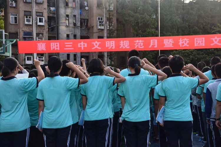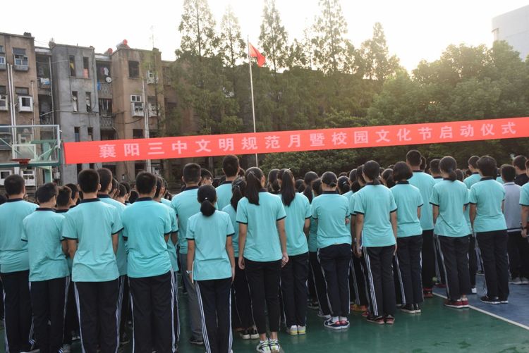當嘹亮的國歌聲在校園里鏗鏘回蕩,鮮艷的五星紅旗徐徐上升展開,在全體師生的注目中,迎風(fēng)飄揚在襄陽三中的上空。