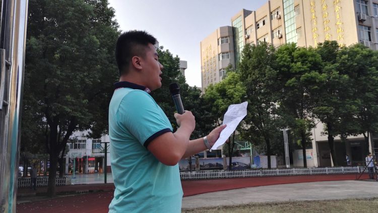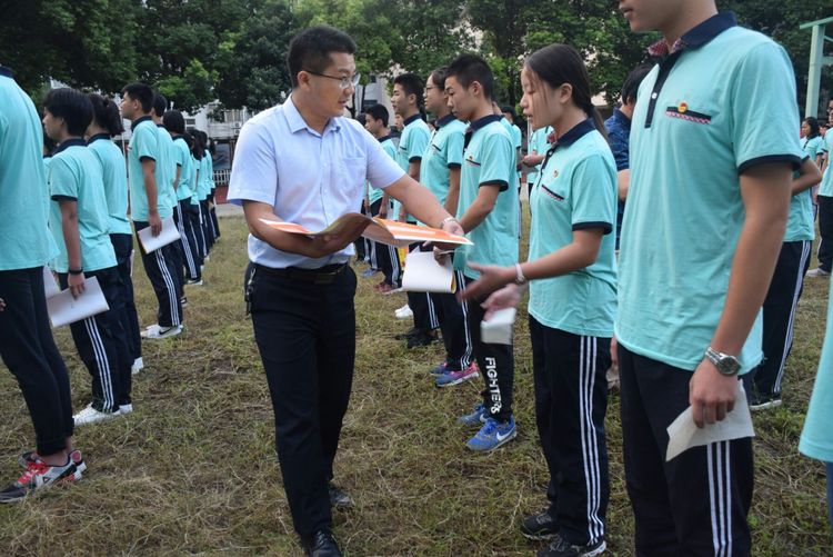 曹校長向高一學(xué)生介紹A、B級部主任。級部主任分別發(fā)表了慷慨激昂的演講,決不辜負學(xué)校和家長們的信任重托,狠抓習(xí)慣養(yǎng)成教育,再創(chuàng)三中奇跡。