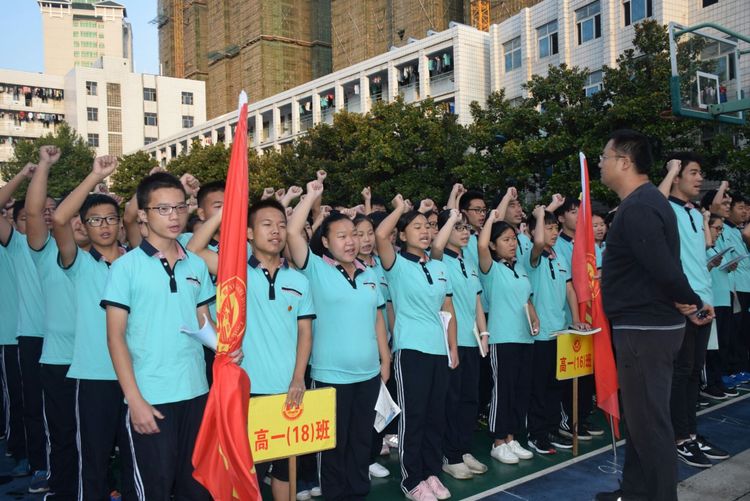 高一(17)班王世豪同學(xué)帶領(lǐng)大家進行入學(xué)宣誓!