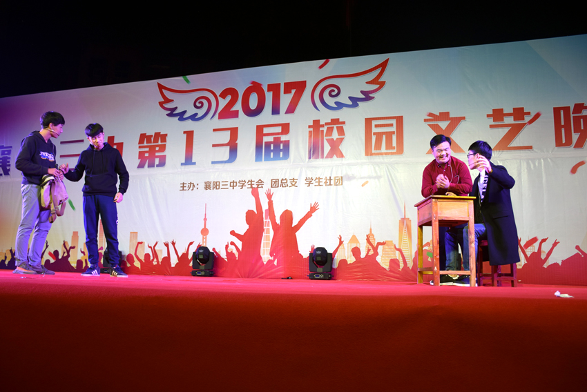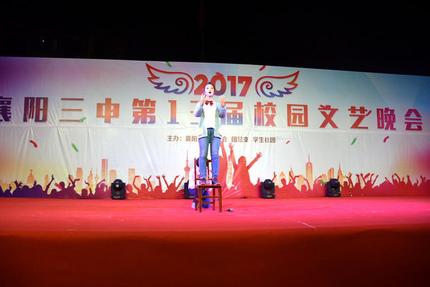 10月26日晚,體藝節(jié)的重頭戲文藝晚會上演。專業(yè)的舞臺,炫麗的燈光,震憾的音響......鋪就了三中的“星光大道”,晚會成了咱三中的“春晚”。師生同臺表演,校友傾情客串,節(jié)目豐富多采,晚會高潮迭起。這是一次才藝與智慧的展示,舞動青春,放飛夢想。這是一次歡樂與激情的碰撞,活力四射,神采飛揚(yáng)。