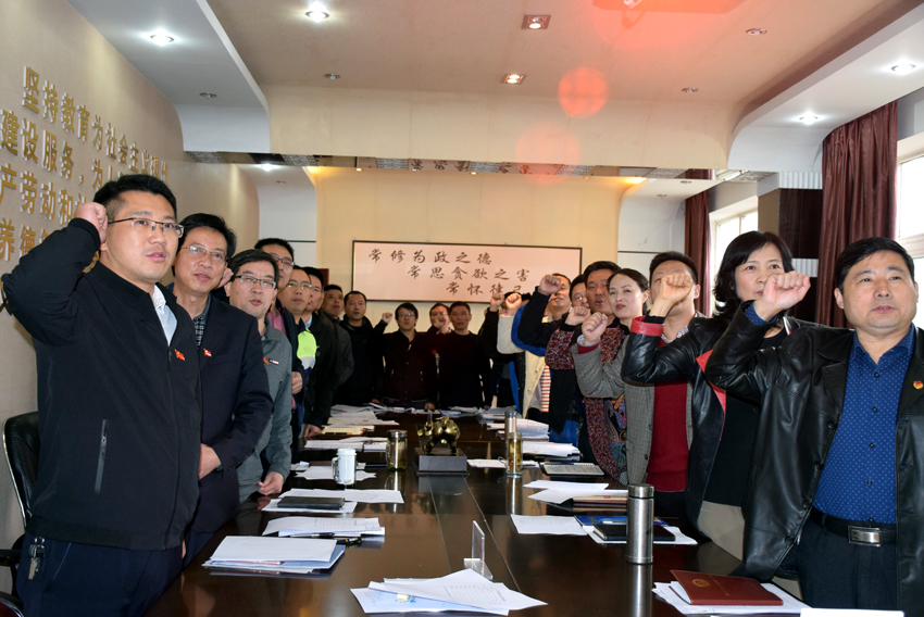 與會(huì)人員面對(duì)黨旗莊嚴(yán)宣誓