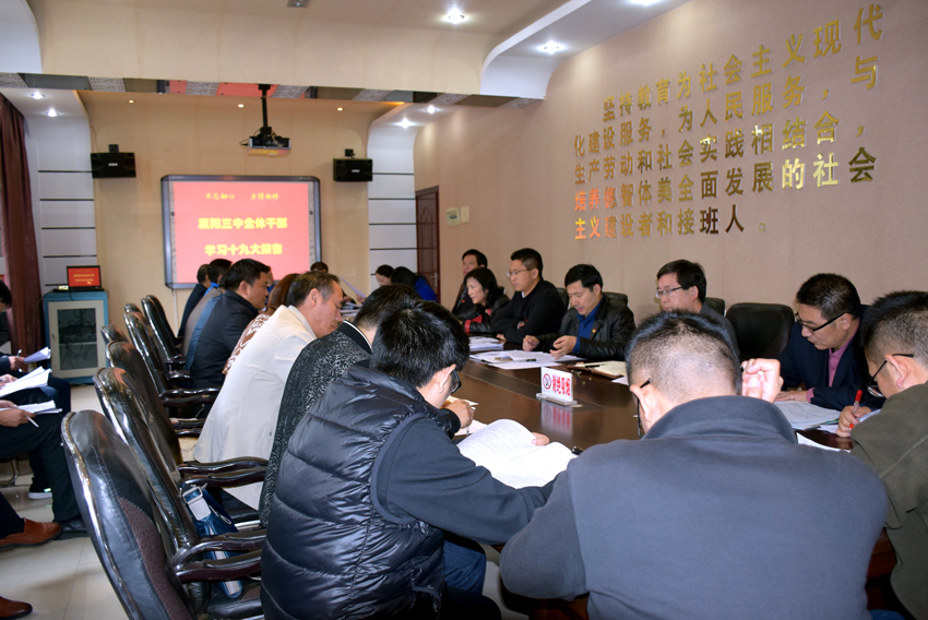 李校長(zhǎng)帶領(lǐng)大家認(rèn)真學(xué)習(xí)黨的十九大報(bào)告
