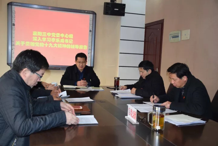 2017年,舉世矚目、舉國(guó)歡慶的黨的十九大勝利召開(kāi),我校立即掀起學(xué)習(xí)黨的十九大精神的熱潮。學(xué)校黨委組織黨員和老師收看黨的十九大開(kāi)、閉幕式和習(xí)近平的報(bào)告,優(yōu)秀講師進(jìn)支部實(shí)現(xiàn)全覆蓋,成立講習(xí)所,每月召開(kāi)一次黨委中心組、全體干部會(huì)集中學(xué)習(xí),為每個(gè)黨員購(gòu)買(mǎi)黨的十九大報(bào)告單行本和新黨章,供黨員自學(xué),利用支部主題黨日活動(dòng)集中學(xué)習(xí),全校老師抄黨的十九大報(bào)告筆記,進(jìn)行檢查并通報(bào),舉辦喜迎黨的十九大學(xué)生詩(shī)歌朗誦會(huì)、班會(huì)、知識(shí)競(jìng)賽等。