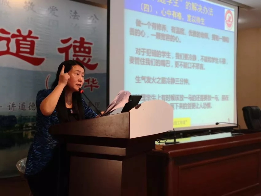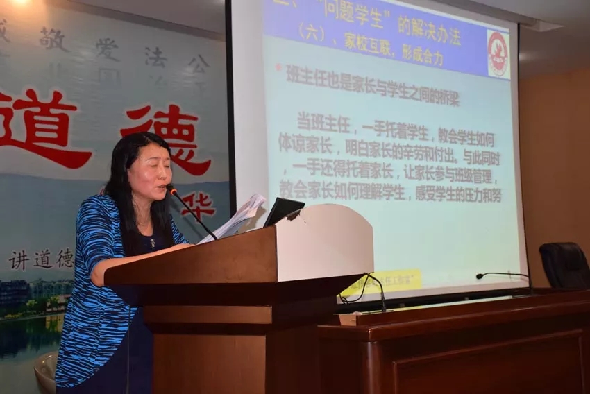 襄陽(yáng)三中“彭紅偉名班主任工作室”主持人彭老師擔(dān)任主講。她以“問(wèn)題學(xué)生的溝通和教育”為主題,結(jié)合自身實(shí)踐,著重從7個(gè)方面闡述了“問(wèn)題學(xué)生”的教育和轉(zhuǎn)化辦法:一是引領(lǐng)思想,提高認(rèn)識(shí);二是細(xì)心調(diào)查,存檔跟蹤;三是寬嚴(yán)有度,防微杜漸;四是心中有格,寬以待生;五是陽(yáng)光雨露,溫暖育人;六是家校互聯(lián),形成合力;七是尊重關(guān)心,正面疏導(dǎo)。彭紅偉老師有著三十余年豐富的班主任工作經(jīng)歷,她用細(xì)膩的情感和名班主任的睿智來(lái)管理班級(jí),被學(xué)生親切地稱(chēng)為“班媽”。彭老師歷年所帶班級(jí)班風(fēng)正,學(xué)風(fēng)濃,成績(jī)?cè)谕?lèi)型班級(jí)中名列前茅。彭老師用大量親身經(jīng)歷的案例,使整臺(tái)講座妙趣橫生。在場(chǎng)的老師們聽(tīng)得津津有味,普遍感到受益匪淺,上了一節(jié)很好的班主任工作培訓(xùn)課?!安环艞壢魏我粋€(gè)學(xué)生,用愛(ài)和寬容去溫暖每個(gè)學(xué)生的心田”,彭紅偉老師最后的真誠(chéng)共勉,贏得了在場(chǎng)全體老師熱烈的掌聲。