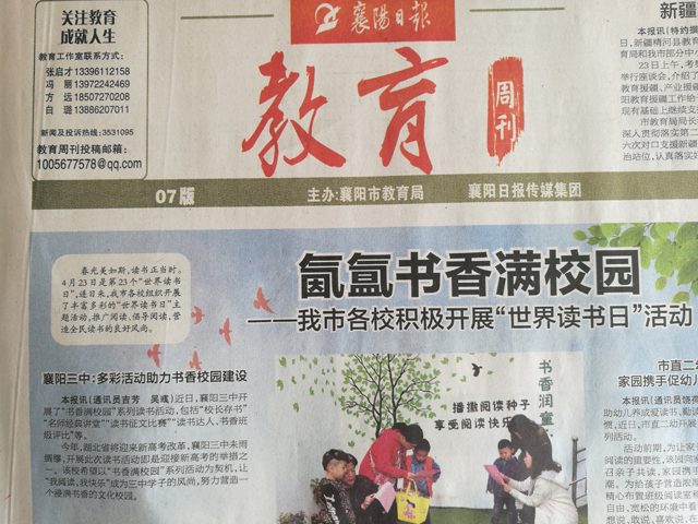 襄陽三中:多彩活動(dòng)助力書香校園活動(dòng)
