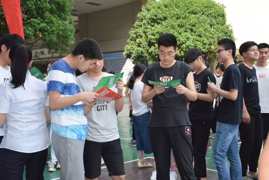 同學(xué)們認(rèn)真閱讀征兵宣傳手冊(cè)