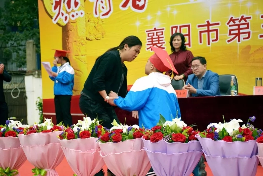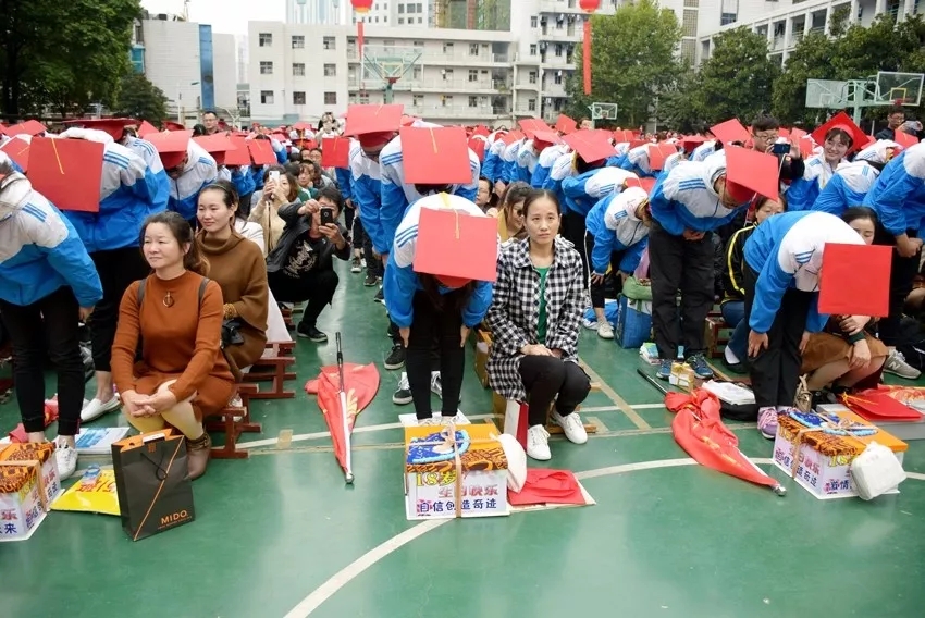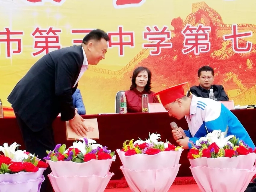 學(xué)子滿懷深情地向家長鞠躬