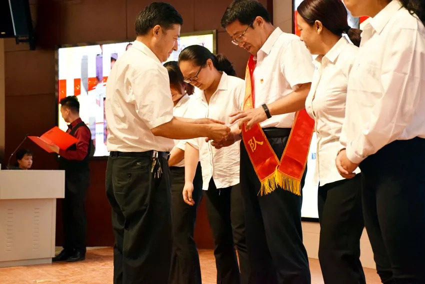 受表彰的157名教職工中,共產黨員84名,占了一半以上;學校一線黨員134余名,受表彰的占了60%以上。他們是旗幟,是標桿,是崗位示范。他們用實際行動踐行了“共產黨員”的神圣稱號。