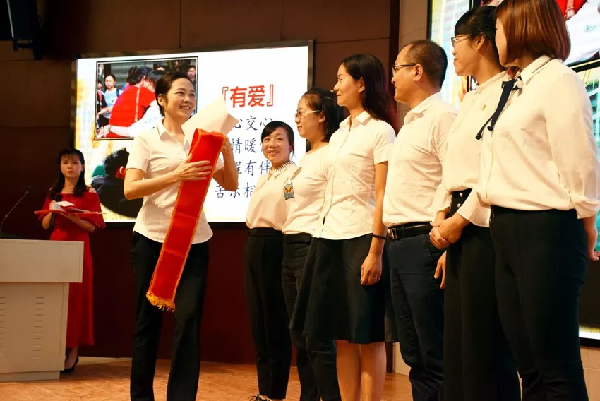 ▲副校長吳興蘭給優(yōu)秀教師頒獎
