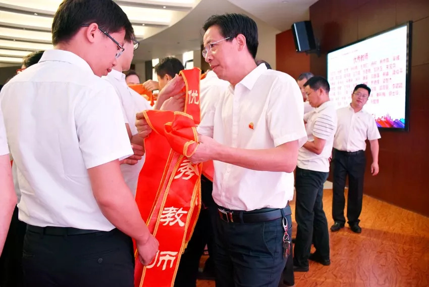▲黨委副書記、紀委書記陳斌給優(yōu)秀教師頒獎