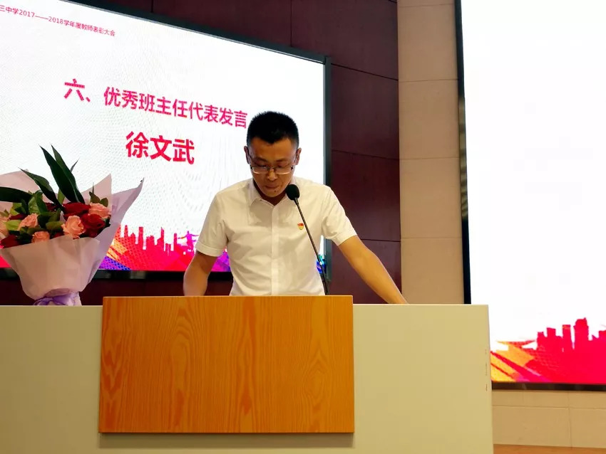 徐文武老師作為功勛班主任代表,作了題為《著力打造班級競爭的軟實力》的發(fā)言,交流自己班級管理的經驗,介紹具體做法,從中可見他管班煞費苦心,把細節(jié)做到極致,高考中班級取得優(yōu)異成績。