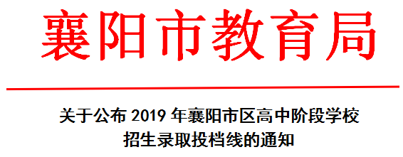 根據(jù)《襄陽市2019年普通高中招生錄取實施方案》(襄教發(fā)〔2019〕16號)精神和高中階段學校招生計劃、考生志愿填報情況,“湖北省高中階段學校招生管理信息系統(tǒng)”已按規(guī)定程序及平行志愿錄取規(guī)則進行了錄取投檔,現(xiàn)將襄陽市區(qū)各高中學校填報志愿錄取投檔線予以公布。
