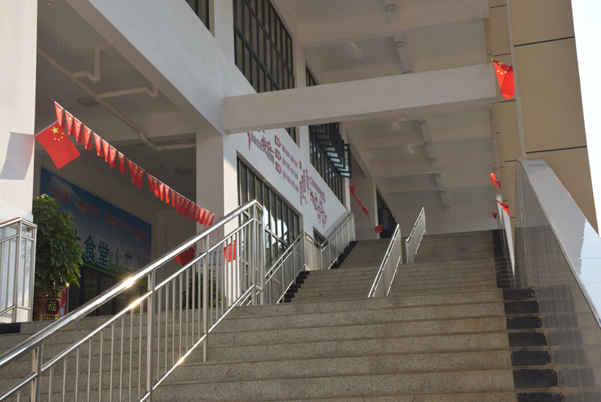 在新中國70華誕來臨之際,襄陽三中校園內(nèi)到處懸掛鮮艷的五星紅旗,向祖國真情告白。