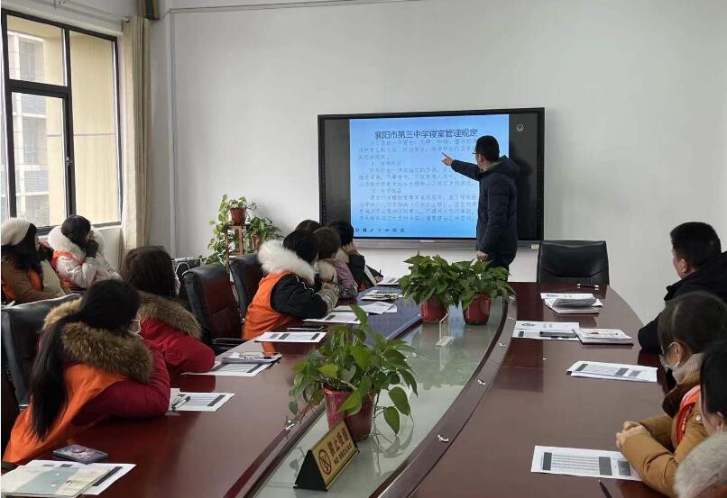 張勇詳細講解了《襄陽三中寢室管理規(guī)定》和《襄陽三中寢室管理員一日工作流程》,他強調(diào)宿舍安全無小事,責任重于泰山,每位管理員都要承擔起應有的責任,在今后的工作中嚴格、認真、規(guī)范、熱情地開展寢室日常管理工作。劉常洪說做好寢室管理工作要有強烈的責任心和愛心,要把學生當成自己的孩子對待,這樣才能管理好寢室、服務好學生。